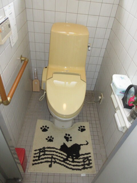 以前はトイレに大便器と小便器があったのですが小便器は使用しなくなったので小便器を撤去して、TOTOのウォシュレット一体型トイレGGへ取替しコンフォートシリーズMサイズの手洗器を設置し、壁は表面が拭きやすいアイカのパネル(セラール)を貼りお掃除がしやすく快適なトイレになりました。