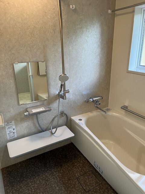 以前はタイルの在来工法の浴室で洗い場が広くて冬場はとても寒かったのですが、今回TOTOシステムバスサザナの1317サイズへリフォームし床断熱仕様のほっカラリ床で足元もヒヤッとせず、浴室暖房乾燥機をつけたので冬場でもあたたかく入れます。魔法瓶浴槽でお湯も冷めにくくお掃除がしやすい人大浴槽にしたのでお手入れも楽になりました。浴槽は以前より大きくなったのでゆったりと入れます。出入りは段差のない片引戸にしたので安心です。